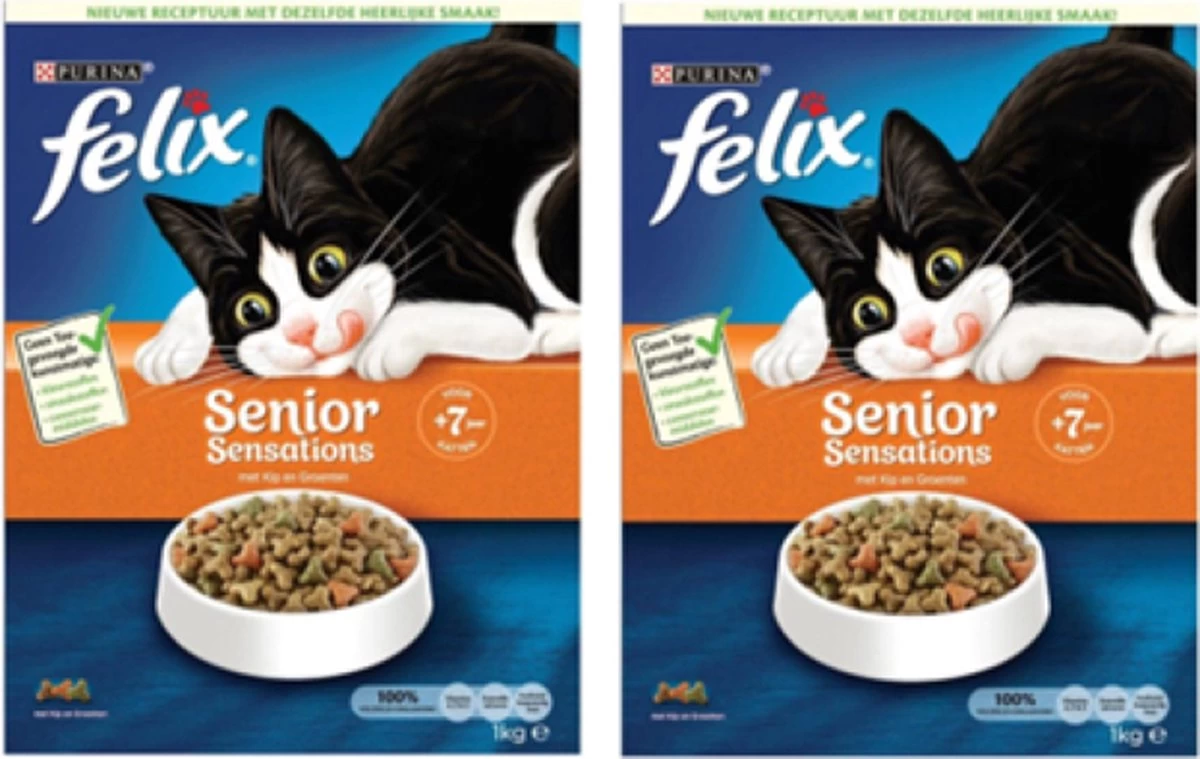 Felix Senior Sensations® maaltijden zien, ruiken en smaken natuurlijk heerlijk voor jouw kat. Iedere kleurrijke maaltijd is speciaal bereid voor ervaren katten van 7 jaar en ouder, boordevol heerlijke, knapperige brokjes en een sensationele combinatie van smaken, inclusief de smaak van groenten.