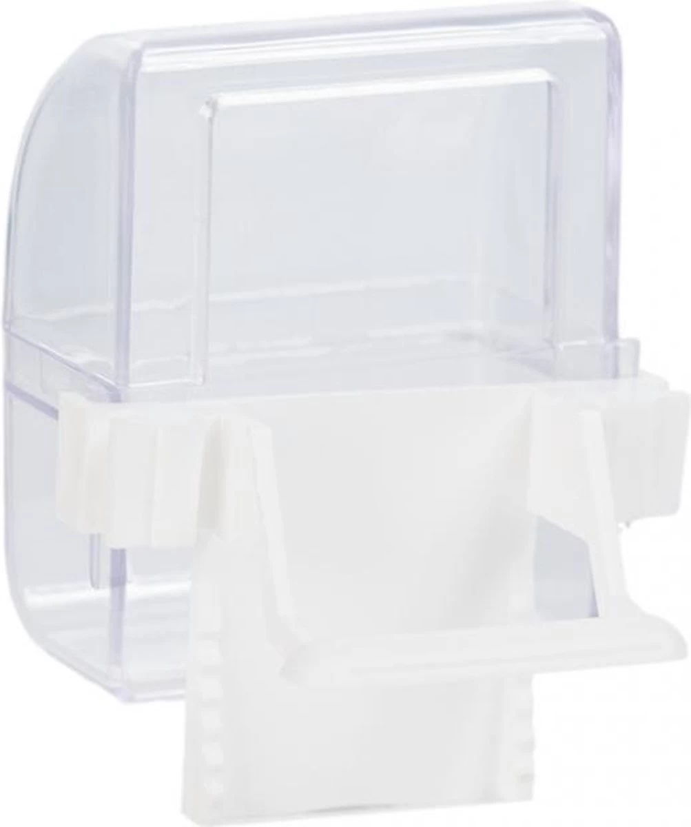 Kunststof eetbakje voor kanaries. Eenvoudig te plaatsen en afwasbaar.