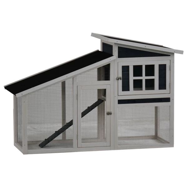 Dit verblijf onderscheidt zich van andere verblijven door het aparte model, waardoor dit hok er leuk uitziet in je tuin. Met een trappetje kunnen je konijnen naar het nachthok. Deze is voorzien van een schuiflade, een openslaand dak en een ruime toegangsdeur, zodat ook het schoonmaken makkelijk wordt gemaakt. Het hok bevat een ruime deur om de konijnen in en uit het hok te tillen en een bitumen dak waardoor je zeker weet dat je konijnen altijd droog zullen zitten.