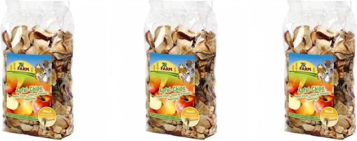 Deze JR Farm appelchips zijn zorgvuldig gedroogd en verpakt (zonder toevoeging van conserveringsmiddelen). Op deze wijze blijven de natuurlijke vitaminen grotendeels behouden. De appelchips kunnen worden gegeven als beloningssnack of gewoon als tussendoortje.