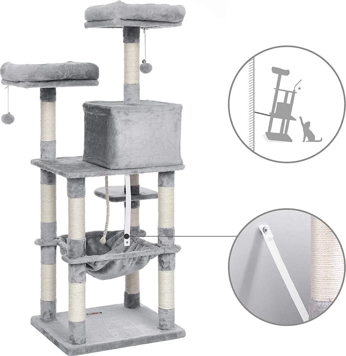 NIET TEVREDEN? Onze katvriendelijke klantenservice staat klaar om te luisteren naar al je vragen. Presenteer dus je fluwelen poot met deze lichtgrijze krabpaal!