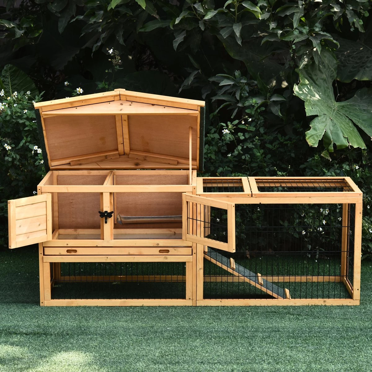 Kies ons huisdierenhuis en geef jouw konijn of andere kleine dieren een geweldige woon-/ speel-/ trainingsruimte. Dankzij de meerdere ingangen kun je het hok gemakkelijk schoonmaken of jouw konijnen voeren. Het hok kan hij bij slecht weer buiten worden gebruikt: het heeft een stevige constructie (100% massief hout) en het lakwerk is waterbestendig. Jij en je huisdieren hebben er jarenlang plezier van. Eigenschappen: Β· Ontwerp met 2 verdiepingen, dus veel ruimte Β· Overdekte leefruimte, ruimte ernaast en eronder om te rennen en te spelen Β· Huis is van 100% massief hout: natuurlijke uitstraling en stevig Β· Door de stevige tralies kunt u uw kleine dieren goed bekijken Β· Meerdere deuren, dus gemakkelijke toegang Β· Veilig: deuren met vergrendeling Β· GeΓ―ntegreerde uitschuifbare bak onder de hoofdruimte voor eenvoudige reiniging Β· Deze kooi met UV-bestendig asfaltdak en waterafstotend lakwerk is geschikt voor gebruik buiten Β· Loopplank zorgt ervoor dat jouw huisdieren gemakkelijk naar binnen kunnen Β· Eenvoudig te monteren Technische gegevens: Β· Materiaal: vurenhout, metaal, asfalt Β· Afmetingen hoofdruimte: 71,8 l x 44 b x 42,5 h cm Β· Afmetingen rechter box: 75 l x 44 b x 53 h cm Β· Afmetingen onderste box: 71,8 l x 44 b x 25,7 h cm Β· Afmetingen loopplank: 49,5 l x 16 b cm Β· Afmetingen deur: 24,3 b x 21,5 h cm Β· Afmetingen raam: 33,8 b x 21,5 h cm Β· Kleur: naturel, groen Β· Netto gewicht: 15,8 kg Β· Omvang van de levering: 1 x konijnenhok Β· Verzendbriefje: Geen verzending naar Nederlandse eilanden.