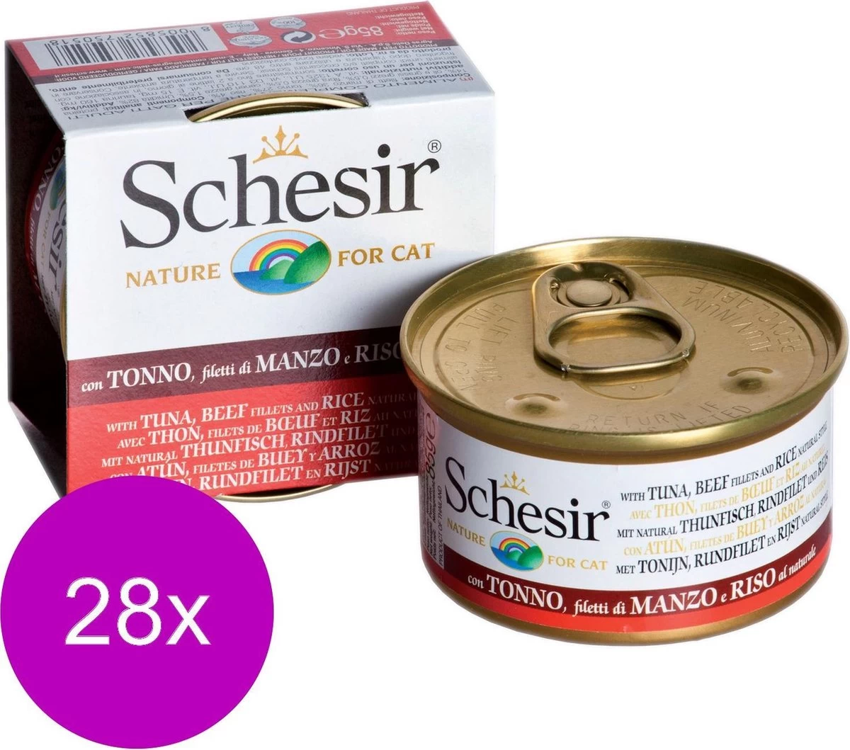 Schesir Kat Blik Gekookte Vis 85 G – Kattenvoer – 28 X Tonijn&Rund&Rijst