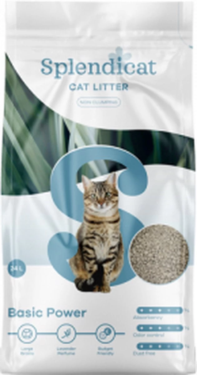 Splendicat Basic Power is een niet-klontvormende kattenbakvulling gemaakt van klei. De grove korrels absorberen snel. Splendicat Basic Power is licht geparfumeerd en verspreidt een frisse parfum waardoor onplezierige geurtjes onmiddellijk verdwijnen.