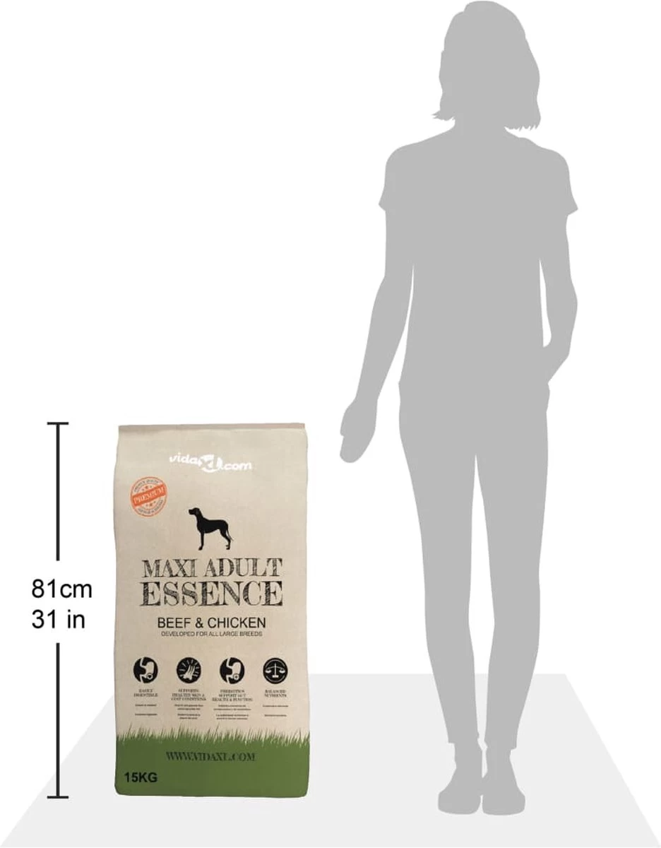 Ons premium hondenvoer Maxi Adult Essence Beef & Chicken is rijk aan prebiotica die de darmflora van je hond en een gezonde huid en vacht ondersteunen. Het hondenvoer is licht verteerbaar dankzij de speciaal geselecteerde ingrediënten en bereidingswijze. Daarnaast zijn de brokken heel erg lekker.